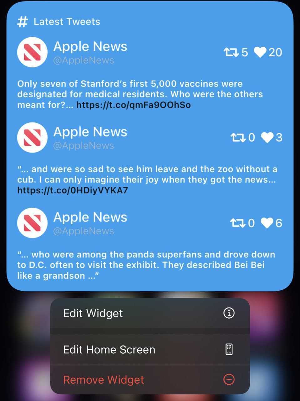 مع ذلك ، توجه إلى قائمة أداة iOS على شاشتك الرئيسية كما تفعل عند إضافة أي أداة أخرى لإعدادها، الأداة متوفرة بثلاثة أحجام (صغيرة 2×2 ، متوسطة 4×2 وكبيرة 4×4) ، كل منها يوفر بيانات تغريدة مختلفة.