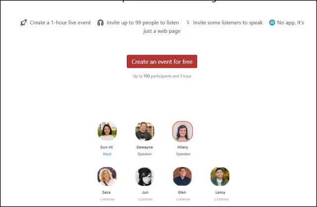 ستتيح لك هذه الخدمة إنشاء غرفة ودعوة ما يصل إلى 99 شخصًا وبث ما يريدون لمدة ساعة ، كل ذلك من خلال المتصفح. إنه ممتع للغاية لأنه يمكننا استخدامه ليس فقط على الكمبيوتر ، ولكن أيضًا على الهاتف الذكي ، بغض النظر عن نظام التشغيل.